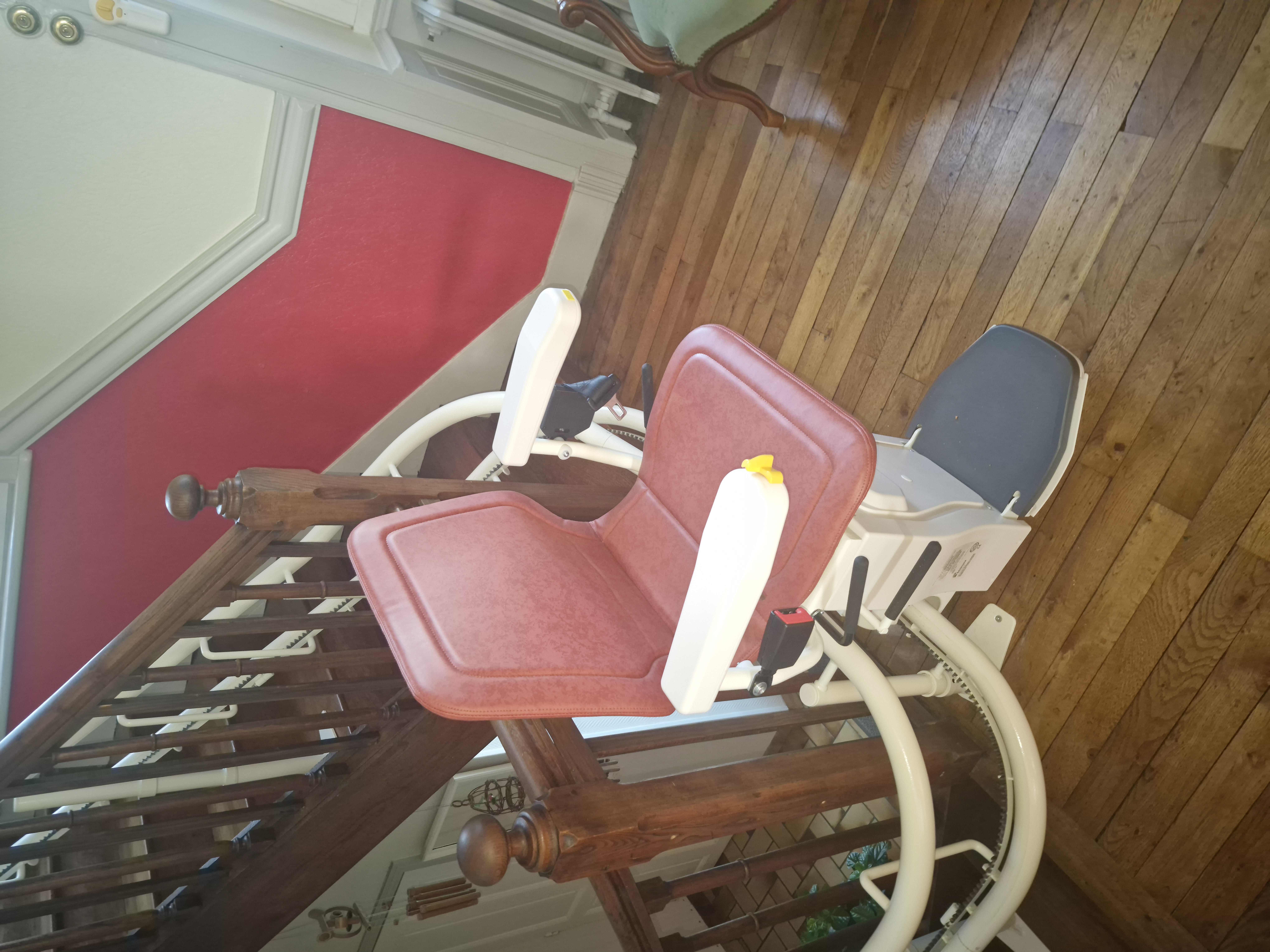 Nous sommes intervenus chez Mme et M. R., à Bressuire, pour l'installation d'un monte-escalier Bespoke Infinity. L'objectif était de sécuriser les déplacements dans un escalier tournant tout en préservant l'esthétique et l'accessibilité du lieu de vie.